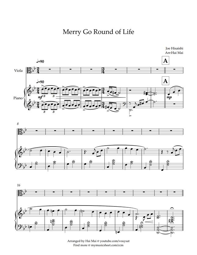 Music notes for score and parts sheet music. Up to 64 cash back Merry-go-round Of Life By Joe Hisaishi - Digital Sheet Music for PianoViola - Download Print A01126246 Sheet Music Plus. Merry Go Round of Life for Viola and Piano Accompaniment.